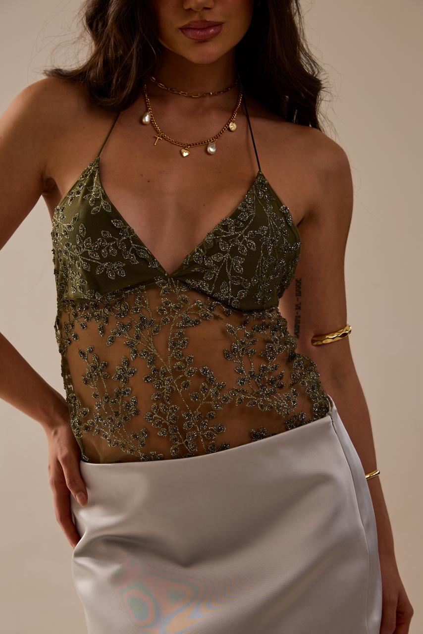 - Tecido tule com strass e glitter, não possui elasticidade